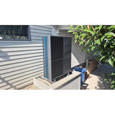 Das Gebäude umfasst ca. 300 m² Wohnfläche mit zwei Wohneinheiten. Die Wärmeverteilung erfolgt über eine Mischanlage aus Radiatoren sowie Fußbodenheizkreisen. Nach fachgerechter Einbindung und Systemabstimmung läuft die Anlage stabil und effizient.